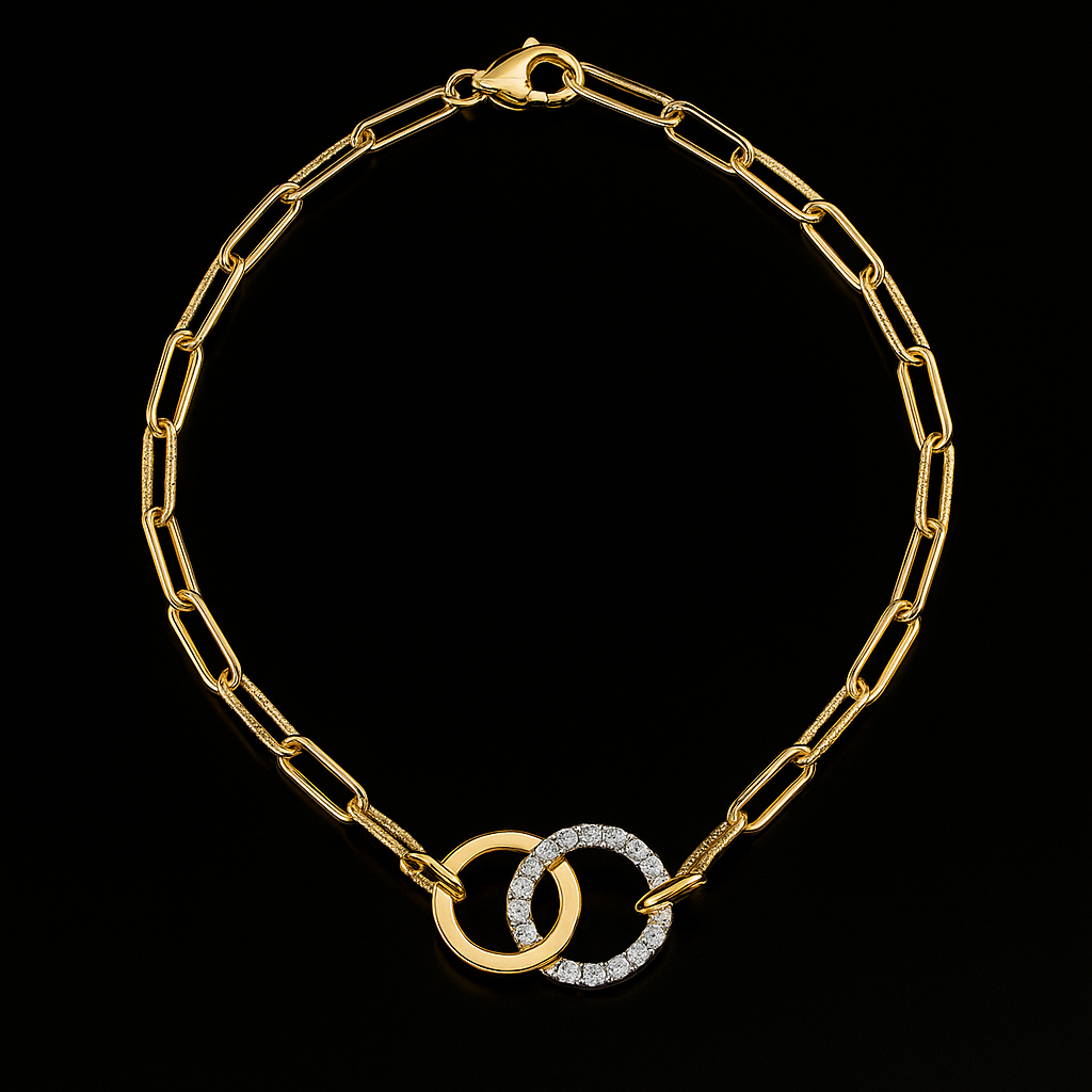 Crafted in Pure Gold, handset with Natural Diamonds. This bracelet is designed for bold energy and everyday flex.