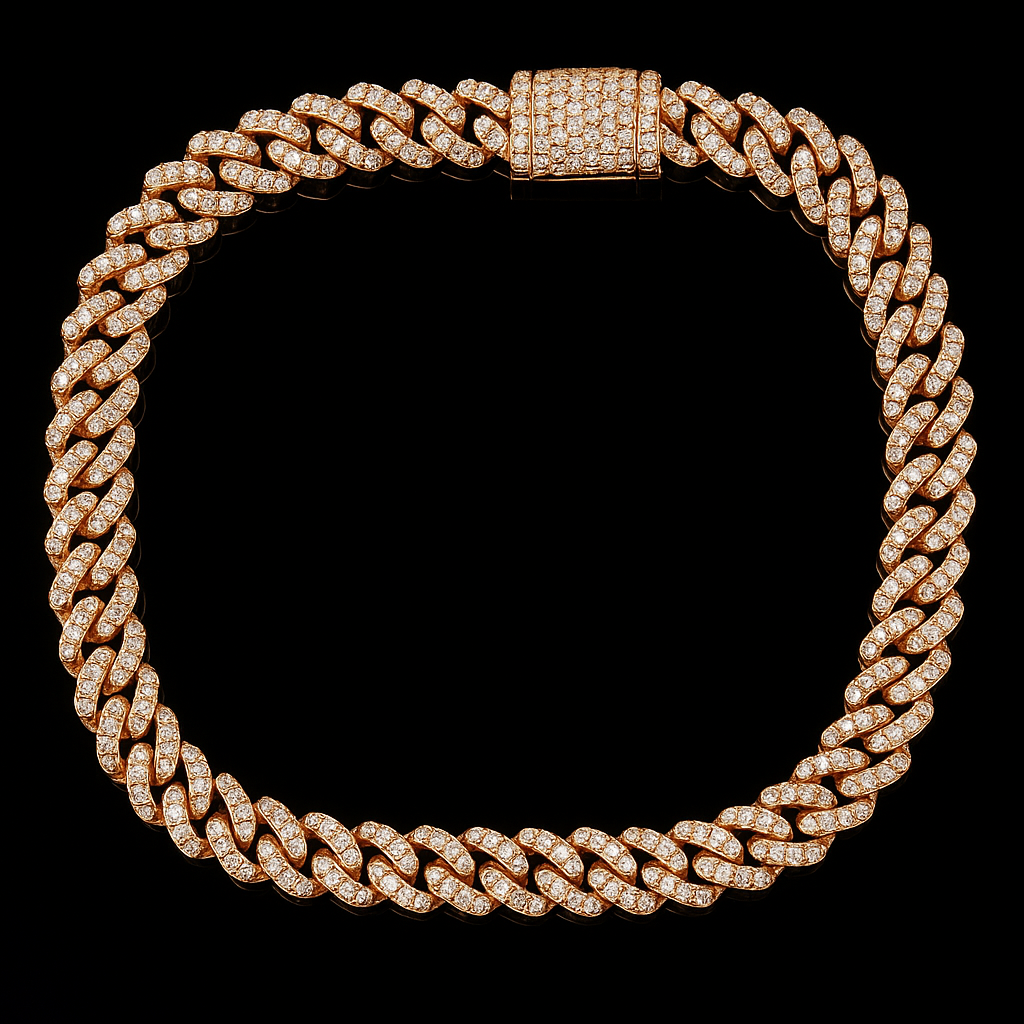 Crafted in 10K Rose Gold, handset with Natural Diamonds. Iconic link profile with heavyweight presence.