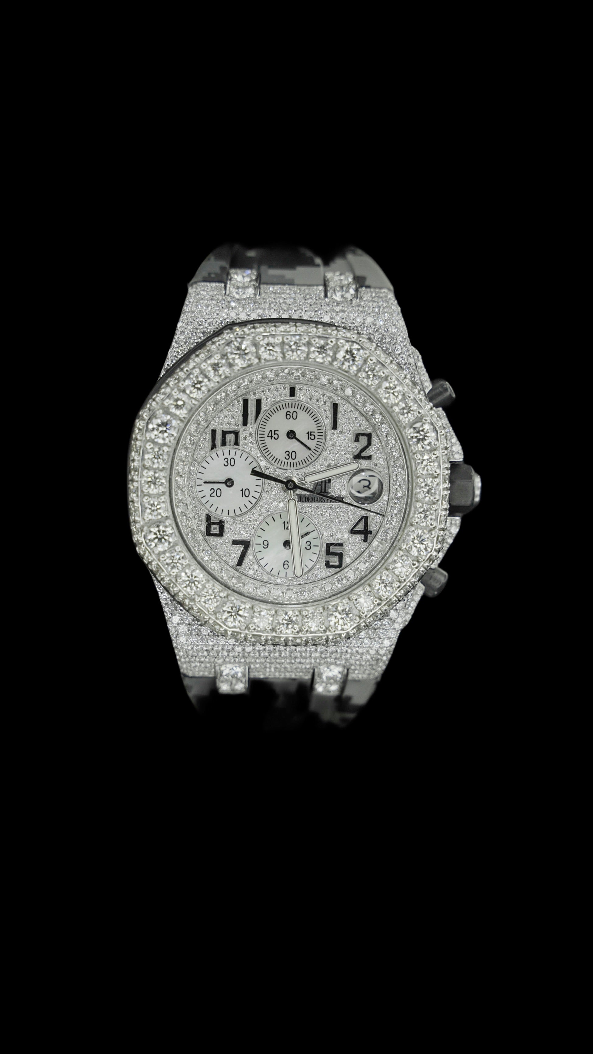 A bold fusion of elegance and edge. The silver body and baguette-set detailing give this piece its smooth, unstoppable energy.