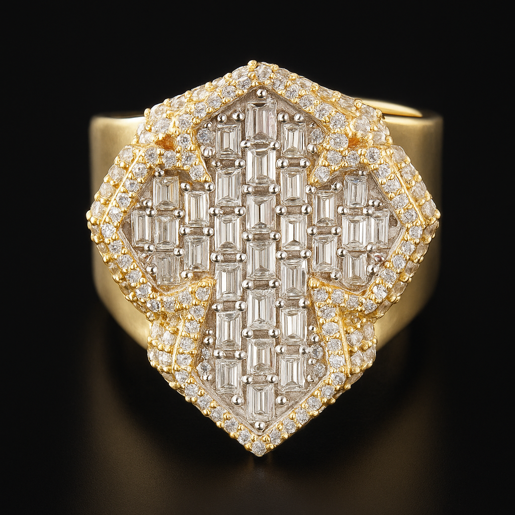 Crafted in 10K Yellow Gold, handset with Lab Diamonds. Classic lines with meaningful presence.