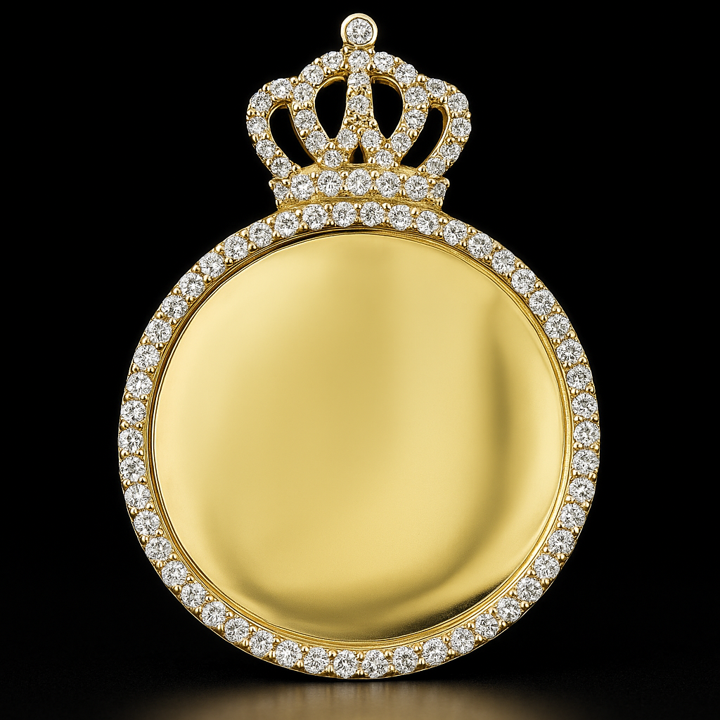 Crafted in Pure Gold, handset with Natural Diamonds. This pendant is designed for bold energy and everyday flex.