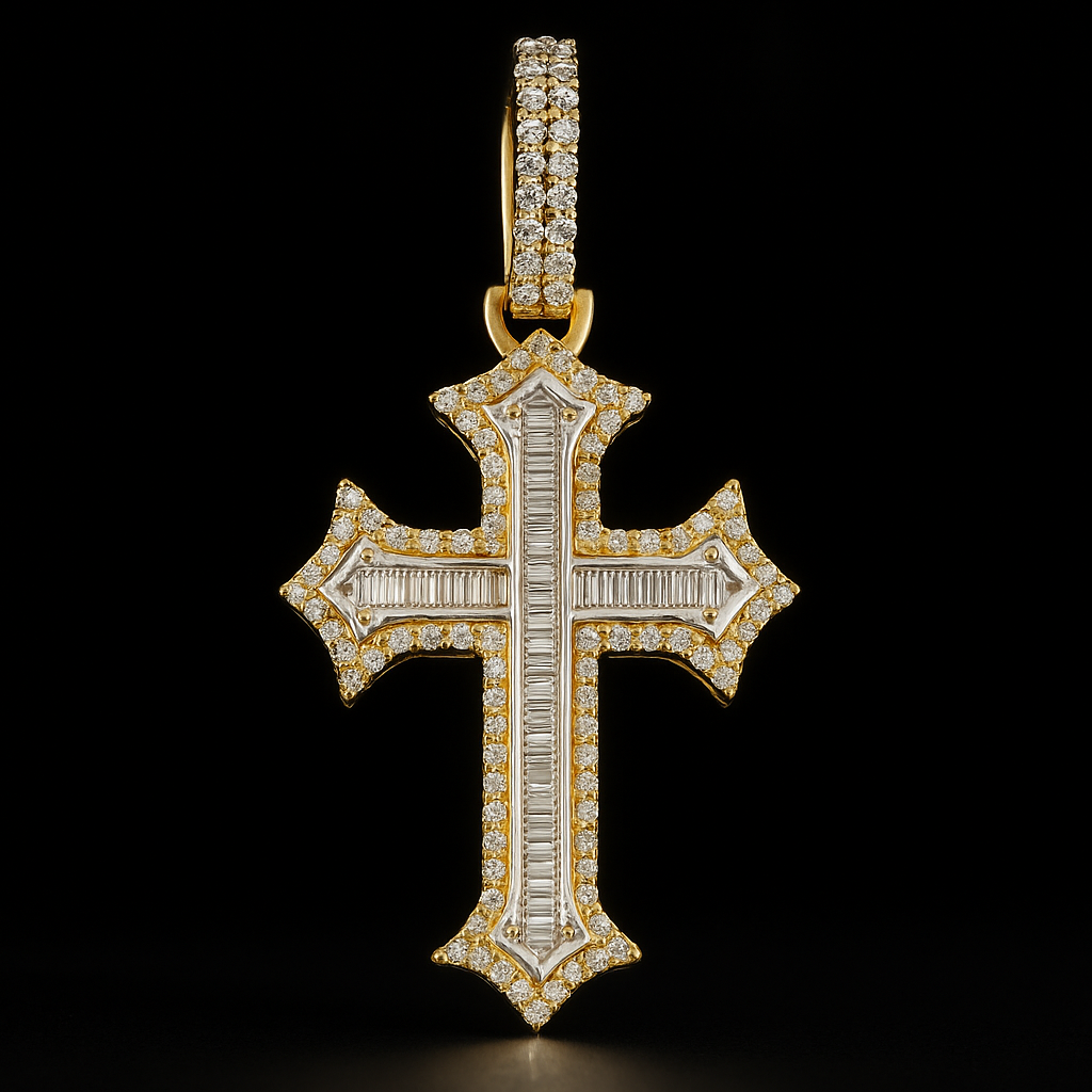 Crafted in Pure Gold, handset with Natural Diamonds. This pendant is designed for bold energy and everyday flex.