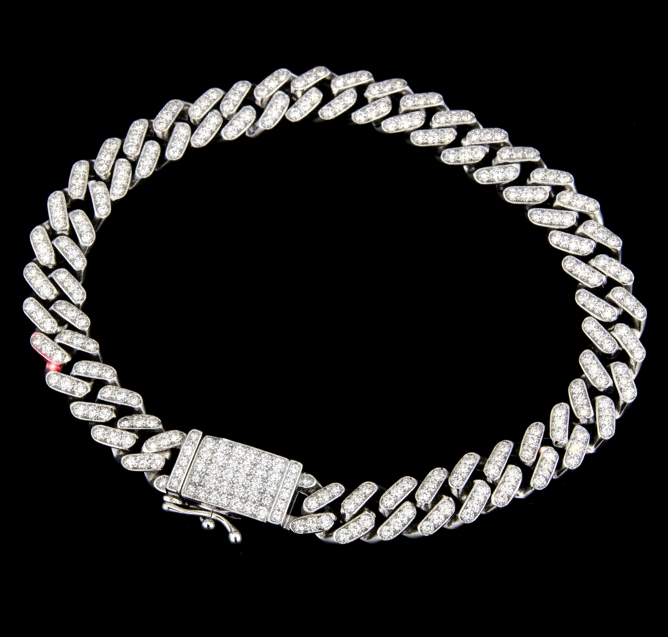Crafted in 10K White Gold, handset with Natural Diamonds. Classic curb geometry with smooth flow.
